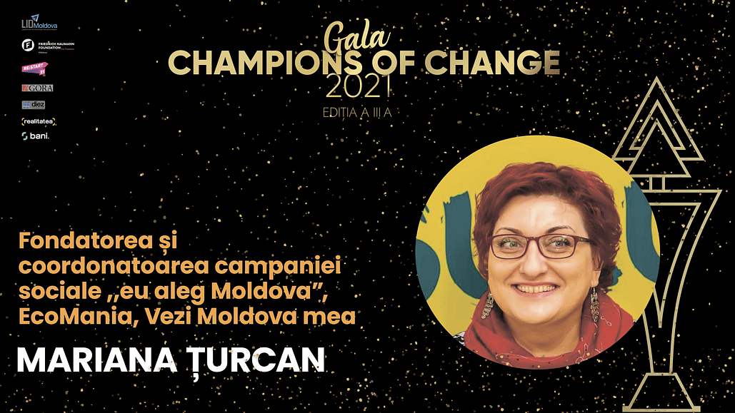 Cea mai frumoasă lecție de patriotism, dăruire și implicare o avem de la Mariana Țurcan, campioană a schimbării din acest an, desemnată în cadrul Galei Champions of Change 2021. După cum se prezintă și dânsa, Mariana este „fiica universului”, fiind de părere că nouă ne aparține Terra, ne aparțin oportunitățile și acțiunile. „Este așa o vorbă: femeile bune ajung în rai, cele rele ajung unde vor. Vorbesc despre curaj și despre faptul că, până nu încerci și nu gândești, nu ai cum să afli. Scurt despre mine: cetățeană cu ambiții. Văd, vreau, pot, fac, gândesc, înseamnă că exist”.
